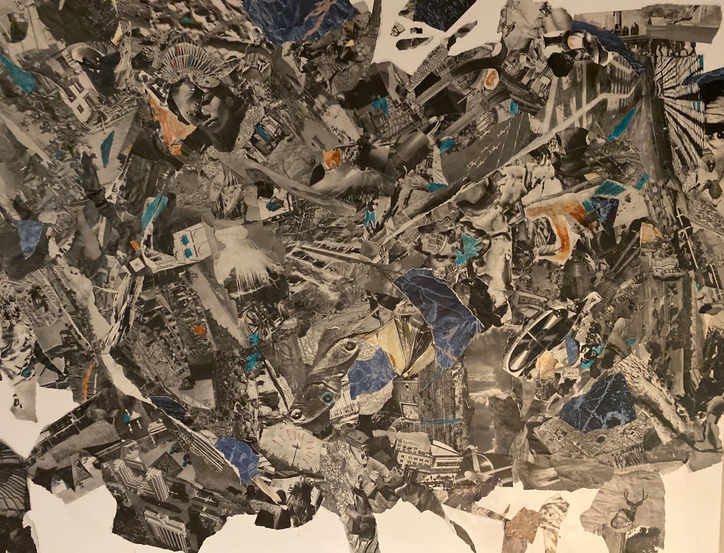 With this addition to my New Mythology series, “One Small Step for a Turtle…,” I reimagine space exploration through a lens of humor and irony, asking: what if the first step into the cosmos was taken by a creature as slow and enduring as the turtle? The bold orange background creates an intense, almost apocalyptic backdrop, contrasting sharply with the black-and-white collage elements. This fragmentation hints at the chaos of history and memory, while the central turtle in an astronaut suit anchors the piece, giving viewers a point of balance amid the disorder.